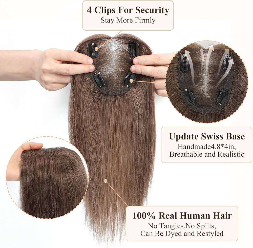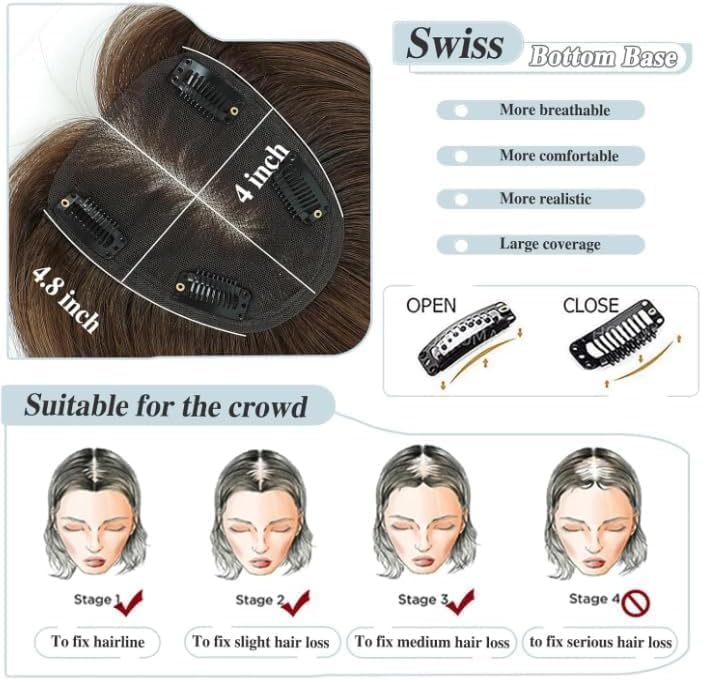 Best Breathable Real Hair Topper for Women Crown Topper No Bangs
